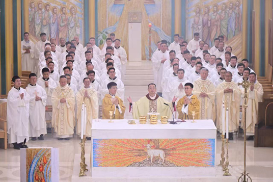 2025年9月19日上午9:30,北京教区甄雪斌助理主教在西什库主教座堂(北堂)主持弥撒,为若亚敬·孙亚敬和方济各·段志军两位执事举行司铎圣秩授予礼。80余位神父共祭弥撒。北京天主教神哲学院师生、北京教区若瑟修女会修女、新铎的亲友及众教友欢聚一堂,共同见证了这一充满恩宠与神圣的时刻。